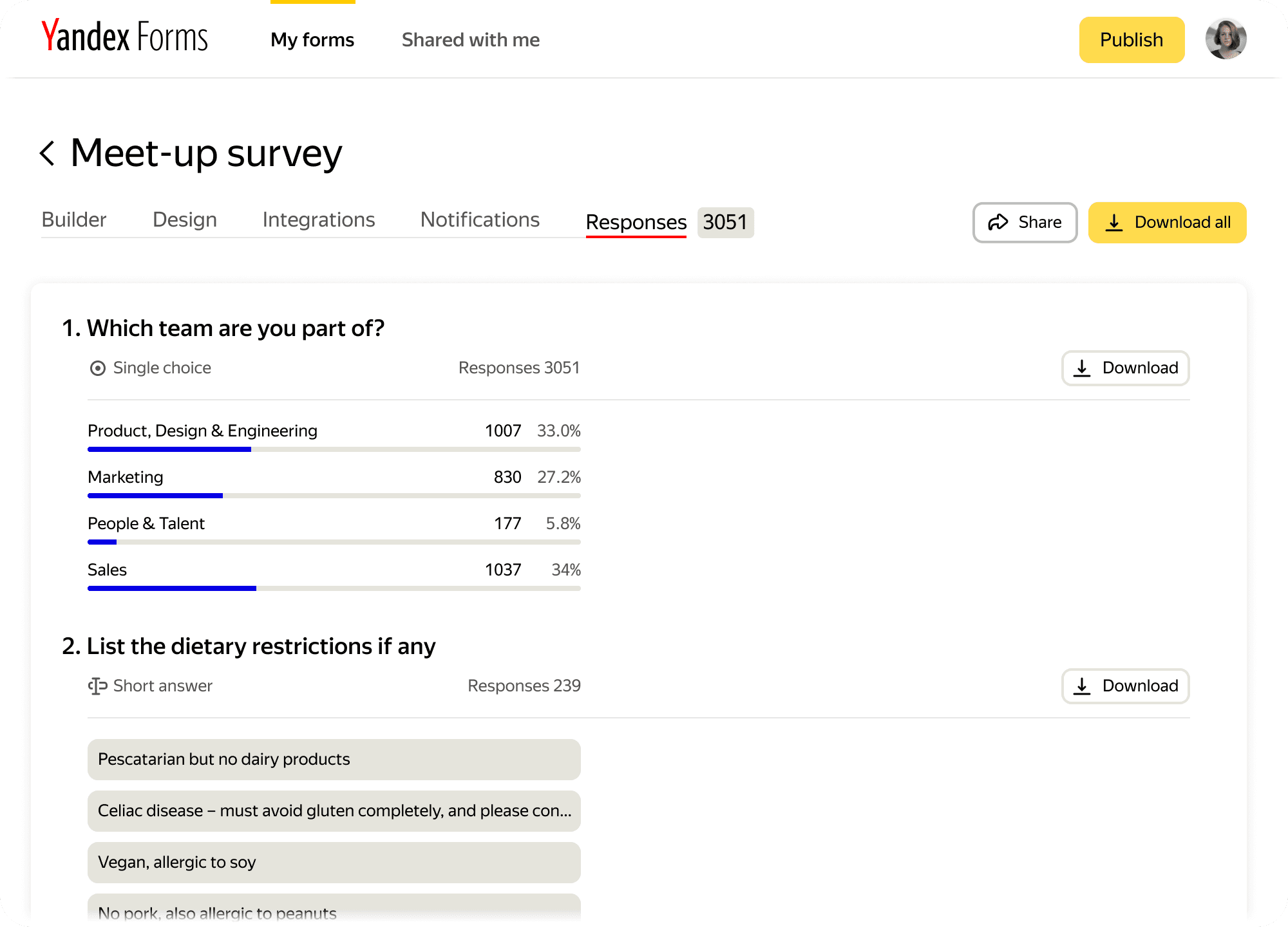 Users wanted quick insights, not raw spreadsheets. Built-in analytics let teams preview results and share insights instantly. Removing friction helped increase form adoption by 4.5× over 3 months.